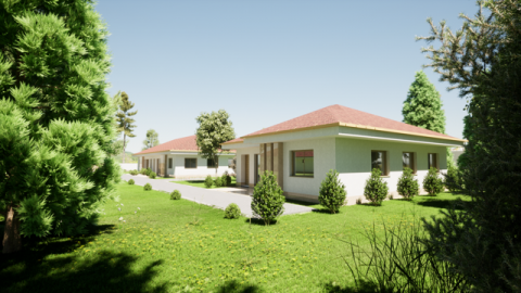 - A Telek első felében egy ikerház, mögötte pedig ez az önálló családi ház található