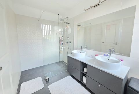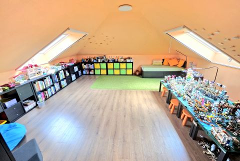 A ház elosztása praktikus és élhető. A földszinten tágas, világos nappalikonyhaétkező kapcsolódik közvetlenül a kerthez és a teraszhoz. Emellett wellness részleg, vendégtér és garázs is helyet kapott. Az emeleten külön nyíló szobák, gardróbok és egy többféleképpen hasznosítható nagyobb tér biztosítja a család kényelmét.