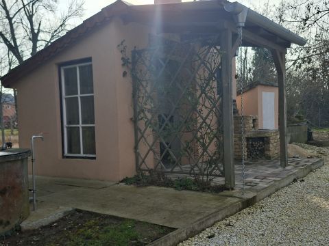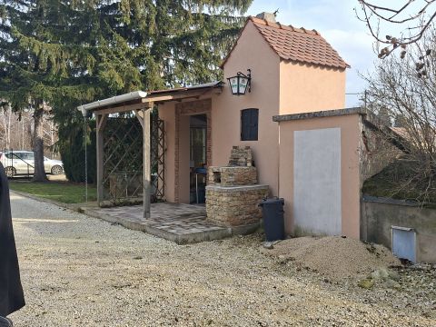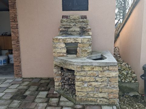 10 m²-es különálló melléképület kemencével a főépülettel szemben
