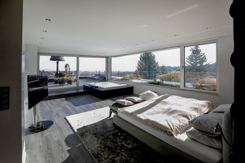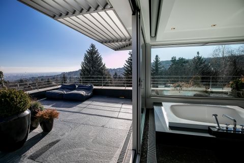 Az ingatlan kialakításánál a letisztult, kortárs design és a prémium minőségű anyaghasználat került előtérbe, amely minden részletében a kifinomult eleganciát tükrözi. A tágas, világos terek és a nagyméretű üvegfelületek révén a ház minden pontjáról lenyűgöző budai panoráma tárul elénk.