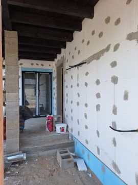 rendszerrel 20cm vastagságú gerendák között fújt cellulóz hőszigeteléssel. A tető TERRÁN ZENIT típusú betoncserép tetőhéjazattal készül antracit színben. Homlokzati hőszigetelés 15cm /EPS/, lábazat 12cm /XPS/vastagságú polisztirol alapú homlokzati hőszigetelő rendszerrel készül. Külső nyílászárók műanyagok, ötkamrás kerettel, háromrétegű hőszigetelő üvegezéssel, argon gázzal töltve - fekete színben.