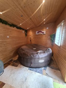 Pergola, szalonnasütő, szaunaház, jakuzzi