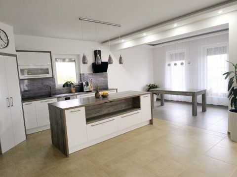 A 2019-ben épült, garázzsal együtt 178 m²-es családi ház egy 793 m²-es telken helyezkedik el, ahol minden részlet a kényelmet és a tartósságot szolgálja. Stabil, 30 cm-es tégla falazat és 16 cm-es grafitos szigetelés gondoskodik az energiahatékonyságról, míg a korszerű műszaki megoldások a mindennapi életet teszik egyszerűbbé.