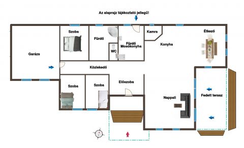 136 m² lakótér, amerikai konyhás nappali étkezővel, 3 kényelmes hálószoba, fürdőszoba, külön wc, mosókonyha és egy praktikus előszoba beépített gardróbbal.