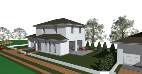A földszinten tágas, amerikai konyhás nappali kap helyet, előtérrel, zuhanyzós fürdőszobával, egy külön szobával, kamrával, valamint egy fűtött garázzsal. Az emeleti szinten három kényelmes hálószoba, egy fürdőszoba és egy praktikus háztartási helyiség kerül kialakításra, így a ház ideális választás lehet akár nagyobb család számára is.