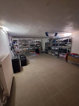 A fedett autóbeálló és a szerszámoskamra praktikus kényelmet nyújt, míg a 25 m²-es pince extra tárolóhelyet biztosít.