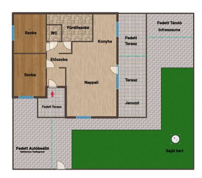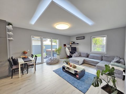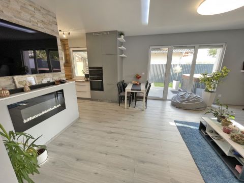 Új energiatakarékos okosotthona festés nélkül (akár azonnal is, teljes bútorzattal és felszereléssel) költözhető, beépített bútorokkal, gardróbbal, teljesen gépesített, amerikai konyhás nappalival, 2 hálószobával, ledes hangulatvilágítással, jacuzzival, infraszaunával és minden részletében átgondolt tervezéssel lett megvalósítva. A ház masszív sávbetonalapra épült, téglafalazattal, 20cm-es szigeteléssel, 3 rétegű üvegezéssel, cserépfedéssel és számtalan extrával lett felszerelve.
