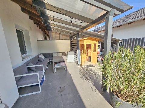 Itt a kivételes lehetőség: makulátlan, téglaépítésű, 88m2-es, 3 szobás, napelemes, padlófűtéses, cirkós, klímás, szigetelt, thermo ablakos, cseréphéjazású, jacuzzis, szaunás, minden igényt kielégítő, tágas terekkel és fedett autóbeállóval rendelkező, pakolható padlásos, nagy teraszos, dupla tűzfalas ikerházfél eladó a Romantika városában: Gyömrő - Ófalu kiváló, kertvárosi hangulatú utcájában, 242m2-es telken!