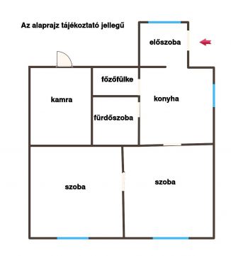A házban 2 szoba, konyha, fürdőszoba, előszoba és kamra található.
