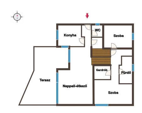 Főbb helyiségek és területek: