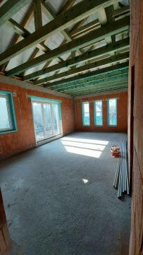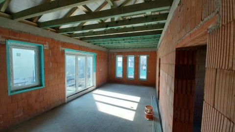 nappali + négy szobás, hőszivattyús, ikerház fél, 460 m2-es önálló telekkel.