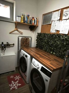 A térkövezett udvarrész akár három vendég gépjármű parkolását is lehetővé teszi a kerítésen belül , továbbá garázs is tartozik az ingatlanhoz,ahonnan közvetlenül is be lehet jutni az épületbe. A ház előtt szintén 3 térkövezett parkoló lett kialakítva egy finom parkosított környezetben.