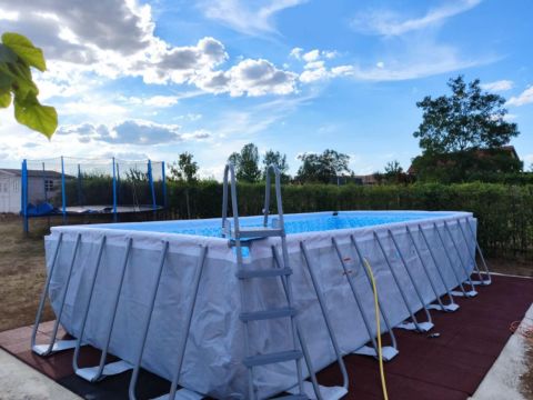 A gondozott, 1.233 m²-es telken 18 m²-es hobbyt-ház, emellett a gyermekek számára külön telepített medence és játszótér is kialakításra került. A szépen gondozott kertben mintegy 100 m²-es sütögető és pihenőrész került kialakításra, amely kiváló helyszíne lehet családi és baráti összejöveteleknek, így a család minden tagja megtalálja a számára ideális kikapcsolódási lehetőséget.
