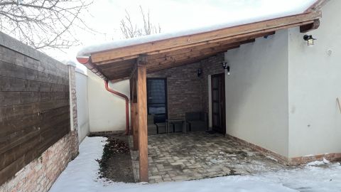 Az ingatlanhoz saját kocsibeálló tartozik, a bejárati kapu és a külső megjelenés is újszerű, rendezett képet mutat.