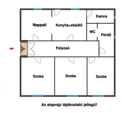 - Rugalmas alaprajz: 3 nagy szoba, tágas nappalis konyha, fürdő és kamra remek alap a saját ízlés szerinti átalakításhoz.