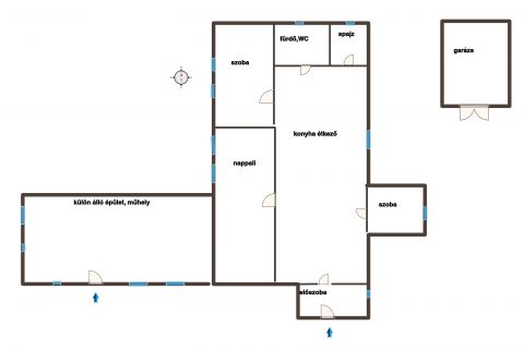Főépület (86 m²) napfényes, praktikus elrendezés