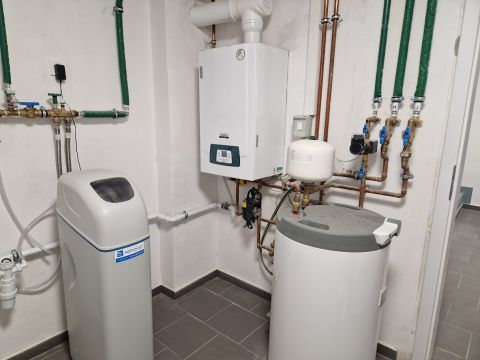 A ház fűtéséről gáz cirkó rendszer gondoskodik, melyhez egy puffertartály is társul, vízszűrő berendezéssel. A nyári hőségben a klímaberendezések nyújtanak kellemes hőmérsékletet.