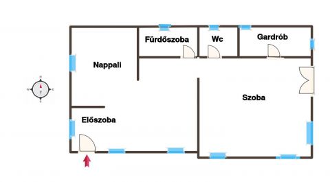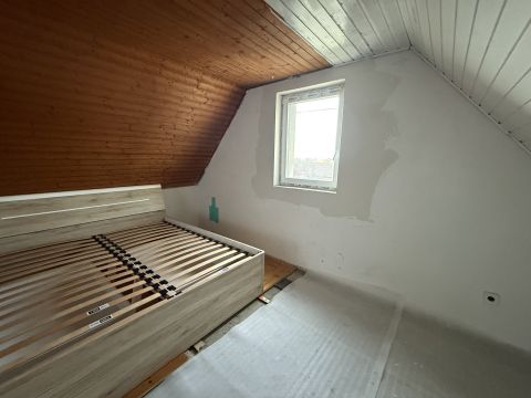 Az alsó szinten található egy nappali, konyha, fürdőszoba külön WC-vel, valamint egy tágas szoba gardróbbal. A tetőtérben további egy szoba került kialakításra.