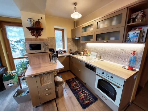 A fűtésről Ferroli Lab elektromos kazán, radiátorokon keresztül és a fürdőkben elektromos fűtőbetéttel, és padlófűtéssel kiegészítve gondoskodik. A meleg vizet villanyboyler állítja elő. A nappaliban cserépkályha is hozzájárulhat a meleg hangulathoz.