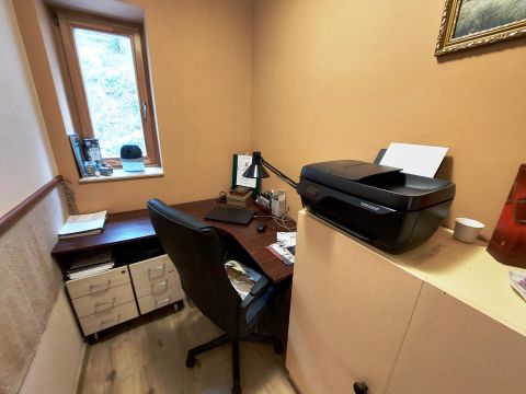 A földszinten található a gépészet (elektromos fűtő kazán, és 200 literes villanyboyler), továbbá műhely és hobby helyiség. 32A normál, és 32A vezérelt kedvezményes áram áll rendelkezésre. Ezen a szinten kisebb ráfordítással kialakítható egy garzonlakás.