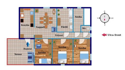 Az 1994-ben épült, beton alapra, beton tégla falazattal készült ingatlan jó elrendezésű, élhető terekkel rendelkezik. A konyha és a nappali kapcsolata kellemes, otthonos életteret biztosít, míg a külön nyíló szobák praktikus elosztást kínálnak családosok számára is. A szobák mérete: 14 m², 13 m², 12,5 m² és 5,8 m².