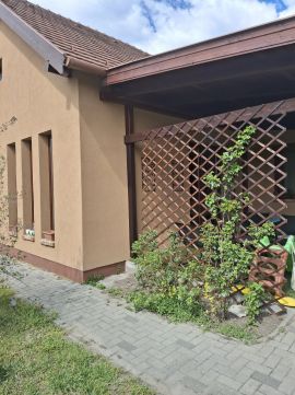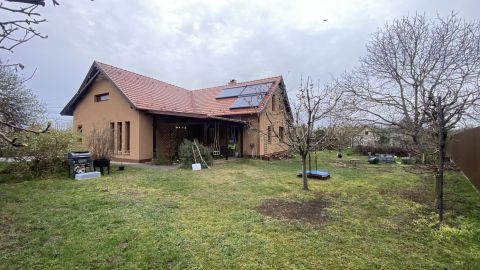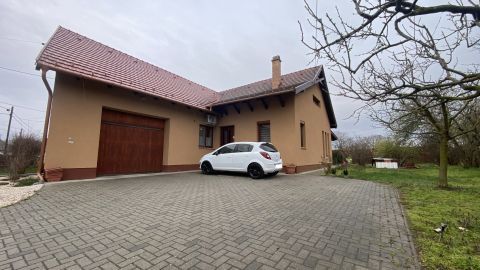A családi ház a község központjától néhány perc sétára, nyugodt, rendezett mellékutcában épült 906 m2-es, teljesen közművesített telekre, amely mára számos termő gyümölcsfával és rendezett, parkosított udvarral büszkélkedhet. Az utcafronton elektromos kapun keresztül juthatunk be az udvarra és kialakítottak egy gazdasági bejárót is a kert hátsó része felől. A locsoláshoz fúrt kút is rendelkezésre áll.