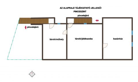 A garázsból a lakótérbe és a tágas, nagy belmagassággal rendelkező 90 m2-es pincébe is eljuthatunk. A pince az udvarról is bejárattal rendelkező házrész, mely praktikusan három nagyobb részre osztott: Egy 26 m2-es tároló, műhely. Egy közel 33.5 m2-es kazánház, mely a tűzrevaló tárolására is rengeteg helyet kínál, valamint a jelenlegi házigazda 'játékszobája' ami számtalan baráti összejövetelnek és jó hangulatú meccsnézésnek volt helyszíne egészen napjainkig.