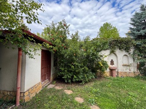 Található benne egy kétállásos garázs, téglaépítésű kerti tároló, grillező terasz, valamint fúrt kútról működő öntözőrendszer.