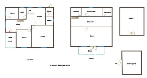 A kertben garázs, pince, melléképület is helyet kaptak, melyek a tulajdoni lapon és térképen is szerepelnek. Kicsi, de annál hangulatosabb kertjében tuják, rózsabokrok tarkítja az összhatást. Fúrt kútja segít a növények gondozásában.