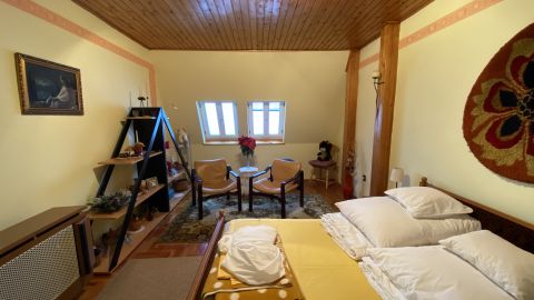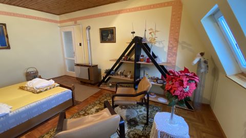- földszinten cserépkályha és radiátoros hőleadás (gáz kazán)