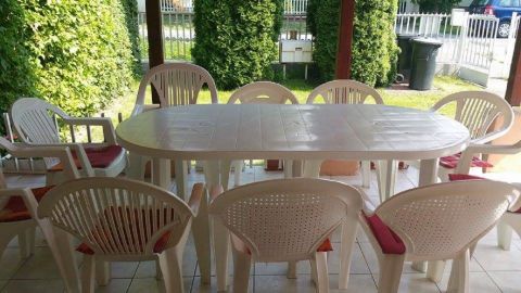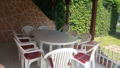 Eladó Balatonföldvár középső részén a Berzsenyi Dániel utcában. Tizenhét fő fér el egyszerre.