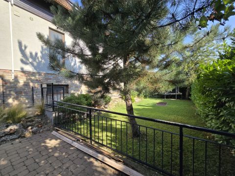 A kert szépen gondozott, locsolórendszer segíti az öntözést, mely elkülönített, locsolási célú mellékvízmérővel rendelkezik