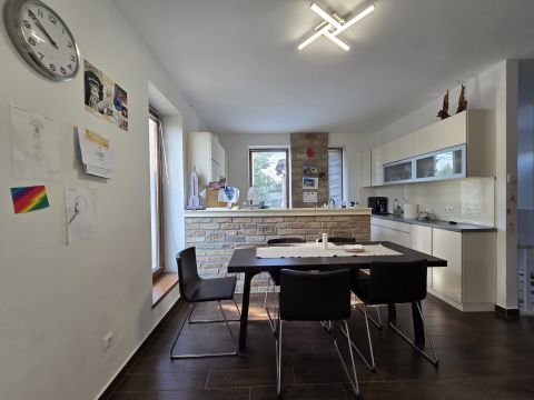 Eladó Diósdliget egyik csendes, romantikus kis utcájában egy belső háromszintes 192 nm-es (150 nm lakótér + 45 nm garázs + 38 nm terasz) rendkívül otthonos családi ház 442 nm-es gondozott kerttel.