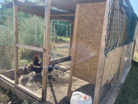 Az ingatlan mögött fedett tárol, a telken jelenleg kisebb házi és haszon állatok tartására alkalmas ólak ketrecek kaptak helyet.