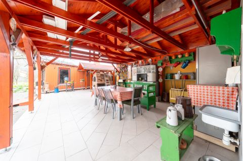 Az ingatlan valódi kincse a rendkívül nagy méretű belvárosi telek, aminek egy része térkövezett. A kertben található több gyümölcsfa is (szilva, cseresznye, alma, őszibarack, sárgabarack) valamint egy fúrt kút, amely tökéletes öntözésére.