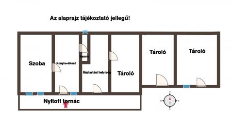 Az ingatlan jelenleg egy szobakonyha elrendezéssel lakható, a további helyiségekben pedig már elkezdődött a fürdőszoba és a belső WC kialakítása, amelyet az új tulajdonos saját igényei szerint fejezhet be.