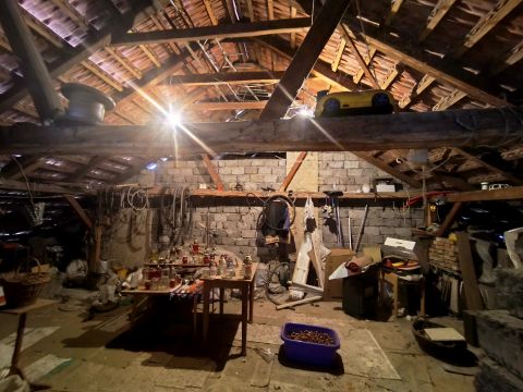A garázs alatt pince található, ahol a vegyes tüzelésű kazán kapott helyet.