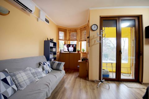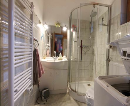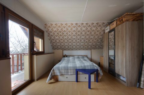 emelet: két külön nyíló hálószoba és egy kisebb fürdőszoba, terasz,