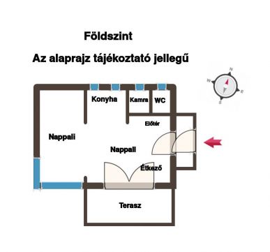 Földszint: 46 m² tágas nappali, étkező, konyha erkélykapcsolattal