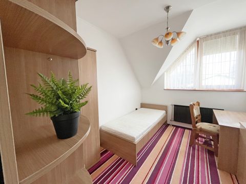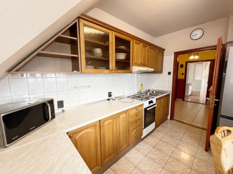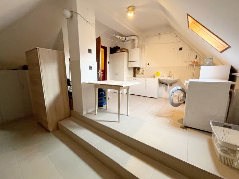 -A lakás helyiségei: nappali + 3 szoba, konyha, fürdőszoba, külön wc, nagy méretű háztartási helyiség, és egy dolgozó- vagy játszószoba