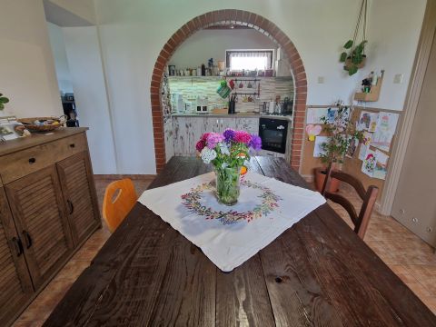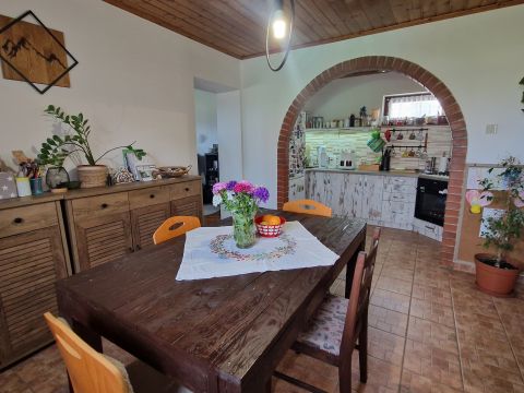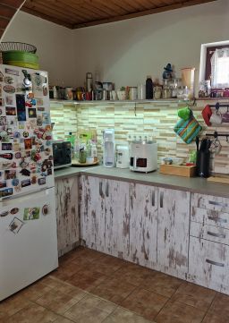 - **Felújítás:** Teljes tetőszerkezet csere, új nyílászárók, hideg- és melegburkolatok cseréje, új konyhabútor, fürdő és WC felújítása, új gázkazán, 32 amperre bővített áramellátás, teljesen új villany- és vízhálózat, spalettás fa ablakok