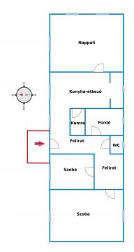 - **Helyiségek:** 2 hálószoba ( 3 szobává alakítható), 36 m²-es nappali, konyha-étkező, kamra, fürdő, WC