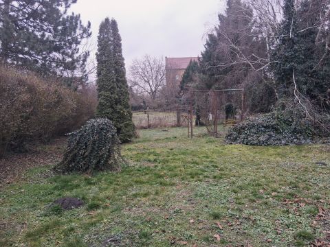 A telek mérete 1678 m2, L (nyeles Telek) alakzatú. A beépített része az utcára nyílik, míg a telek hátsó része szélesebb, nagyobb térrel L alakban végződik, ez a struktúra csendesebb, intimebb hátsó területet biztosít. Parkosított, de még nagyon sok lehetőség rejlik benne.