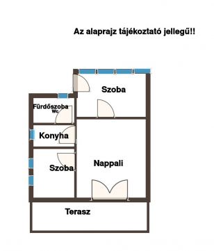A nyaraló elosztása: nappali, fürdőszoba- wc, konyha, 2 hálószoba, terasz kialakítású.