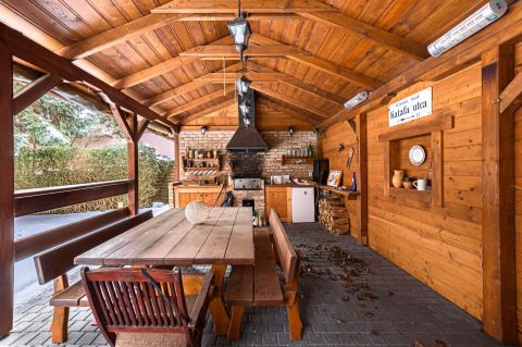 A 2000-es építésű ház 2020-ban esztétikai, és gépészeti felújításon esett át! Parkosított hangulatos udvara van, ahol beépített udvari medence (3*7 méteres), kerti tároló (7 m2). valamint egy fedett 28 m2-es nyári konyha is található beépített grillezővel, elszívóval, konyhabútorral, tökéletes helyszínül szolgálva családi, baráti összejöveteleknek.Az ablakok és teraszajtók külső FA SPALTETTÁVAL felszereltek.