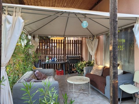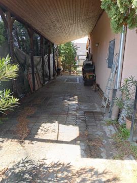 A telek további előnye, hogy a ház mellett akár három autó beállása is biztosított, emellett szerelőakna is található, ami nagyban megkönnyíti az autó karbantartását.