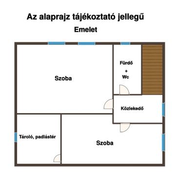 Az emeleten két külön bejáratú szoba található, melyek közül az egyik egy 29 m²-es és DK-i tájolású. A nagyobbik szoba méretéből adódóan igény szerint akár könnyen két külön szobává is alakítható. Ezen a szinten helyezkedik el a második fürdőszoba WC-vel, valamint egy zárható padlástér, amely praktikus tárolási lehetőséget biztosít.