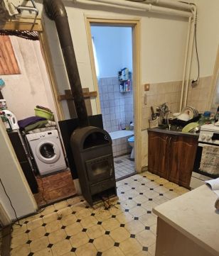 A fűtés kályháról megoldott, a melegvíz ellátás villanybojler biztosítja.