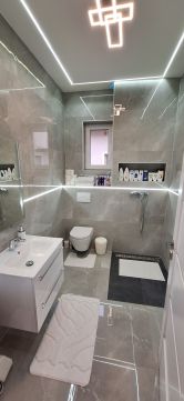 A házban 3 különálló hálószoba található, mindegyik saját fürdőszobával és WC-vel ez a megoldás kényelmes és elegáns, tökéletes akár nagyobb család számára is.