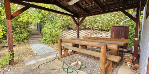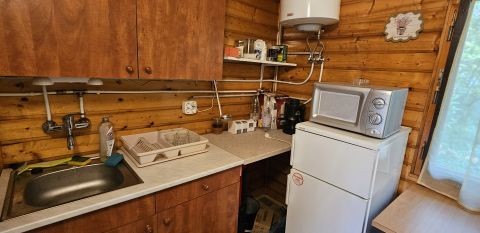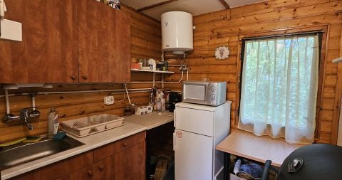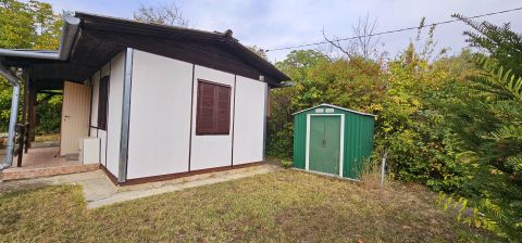 Pécstől 18km-re, Pécsváradon a Dombay-tónál eladó egy 20nm-es könnyűszerkezetes hétvégi ház.